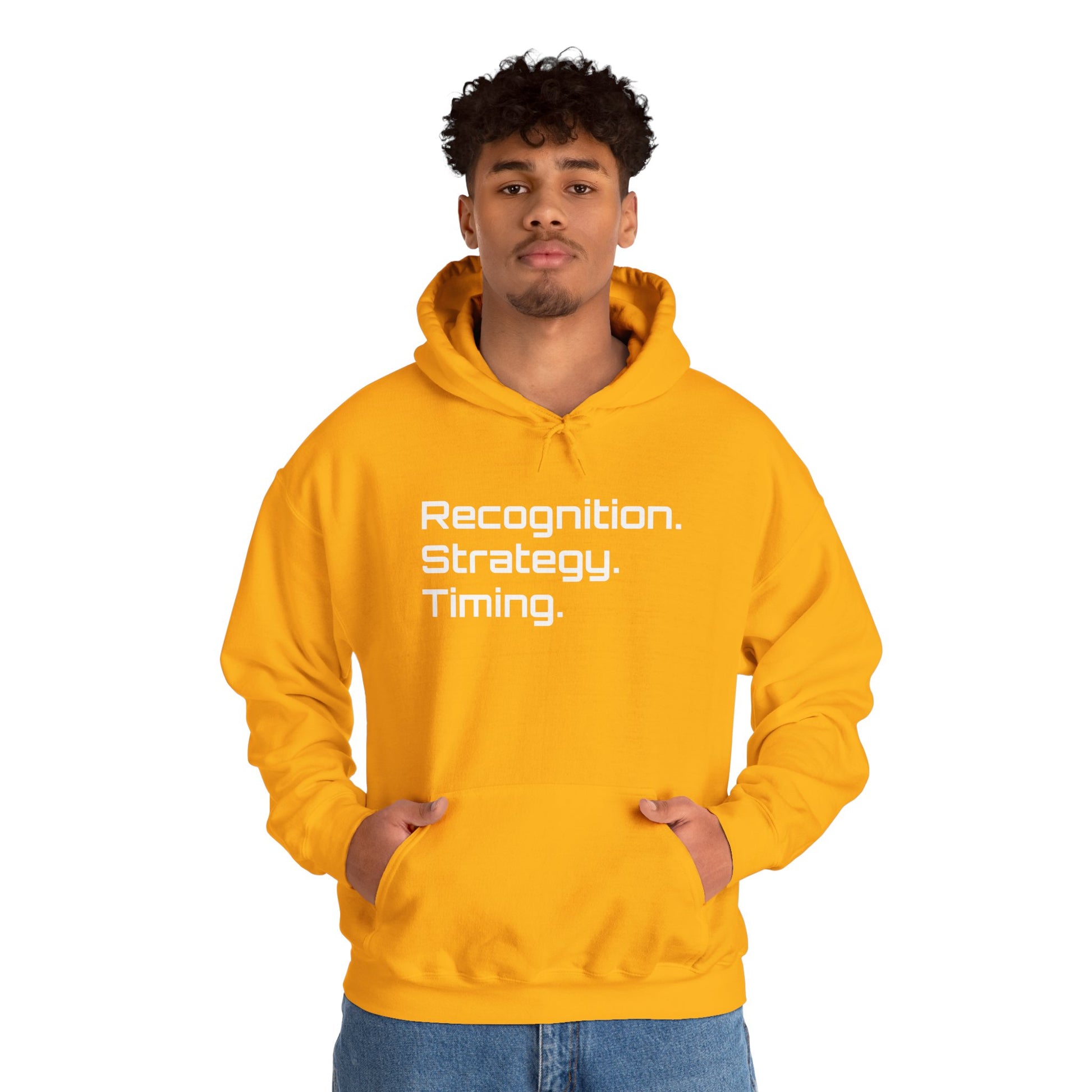 "Recognition. Strategy. Timing." Hooded Sweatshirt